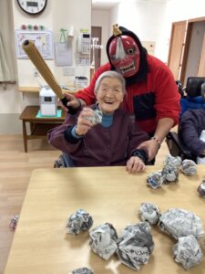 👹 節分 👹 2026年2月24日 最終更新日時 : 2026年2月24日 j.matsumoto つるの川では、2月3日節分のイベントを開催いたしました。 「鬼は外、福は内」と豆をまいて、邪気を払い、一年間の無病息災を願いました☆ 入居者様の皆さんの元気に鬼も一目散に逃げていきました😊 鬼退治と恵方巻のレクリエーションや、おまけの動画もお楽しみにご覧ください♪♪ Follow me!